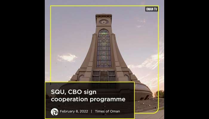 Tuesday 08/February/2022 18:34 PM Maghrib Minute: SQU, CBO sign cooperation programme 1. SQU, CBO sign cooperation programme2. Rough sea expected in parts of Oman3. New Covid 19 cases