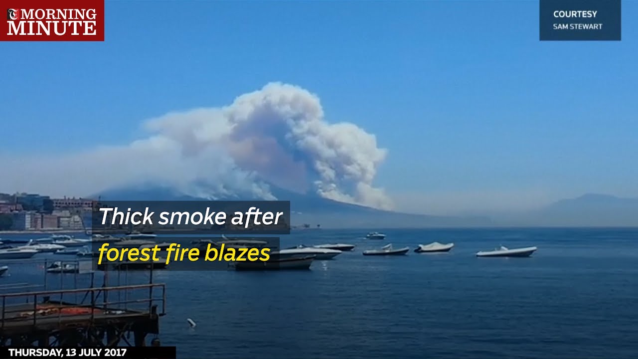 Wednesday 12/July/2017 20:36 PM Thick smoke after forest fire blazes Plumes of smoke was seen rising over Mount Vesuvius as forest fires continued to burn
